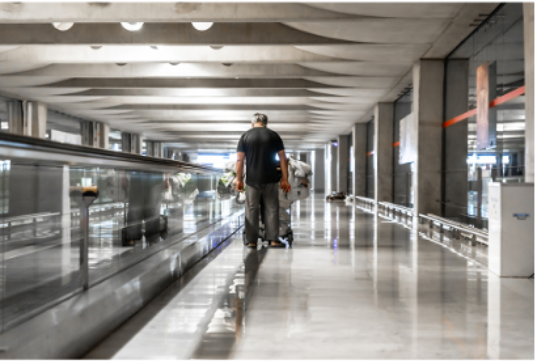 Seuls, ou presque, dans un aéroport désert, entre boutiques fermées et guichets clos.